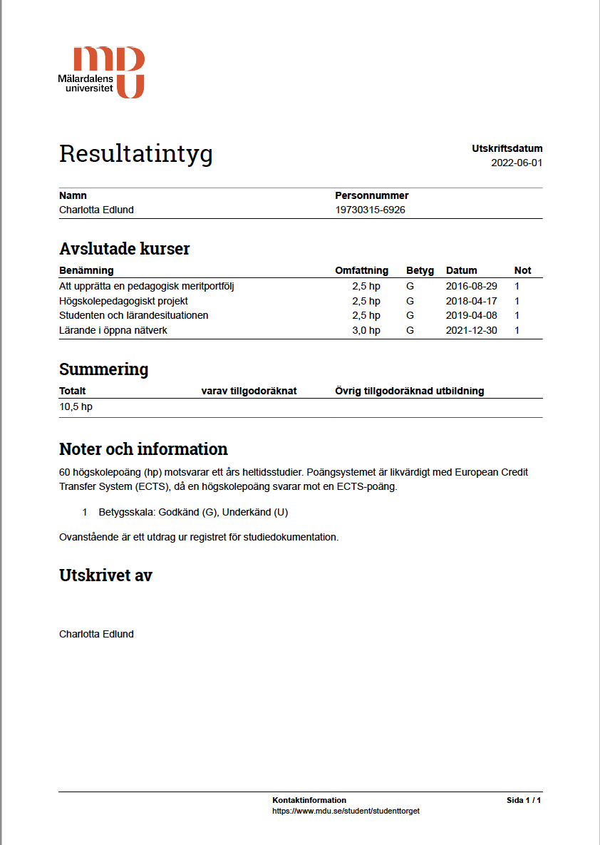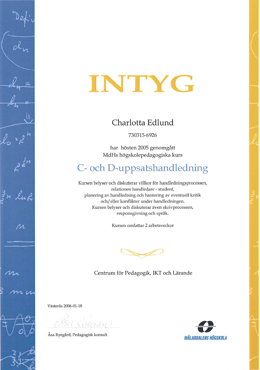 - Pedagogisk meritportfölj 2.5hp (2016)